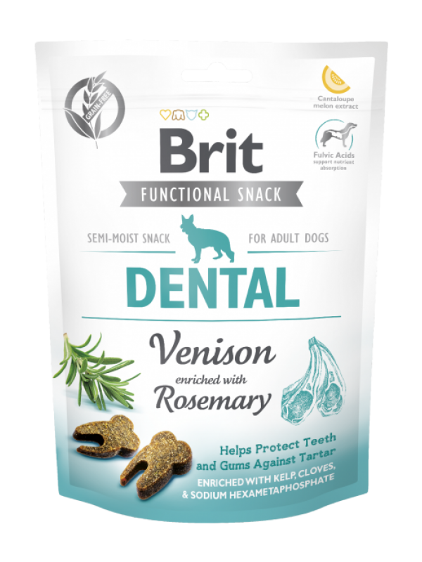 Υγιεινό σνακ για ενήλικους σκύλους με μικρή κροκέτα και δράση που προστατεύει τα δόντια και τα ούλα από την οδοντική πέτρα. Περιέχει κρέας ελαφιού εμπλουτισμένου με δενδρολίβανο, το οποίο χρησιμοποιείται ως φυσική οδοντιατρική θεραπεία για να κρατήσει τα δόντια και τα ούλα υγιή. Ενισχυμένο με κελπ, γαρίφαλο και εξαμεταφωσφορικό νάτριο. Χωρίς δημητριακά & χωρίς πατάτα, φουλβικό οξύ για απορρόφηση των θρεπτικών ουσιών και εκχύλισμα πεπονιού Κανταλούπε ως πηγή αντιοξειδωτικών.