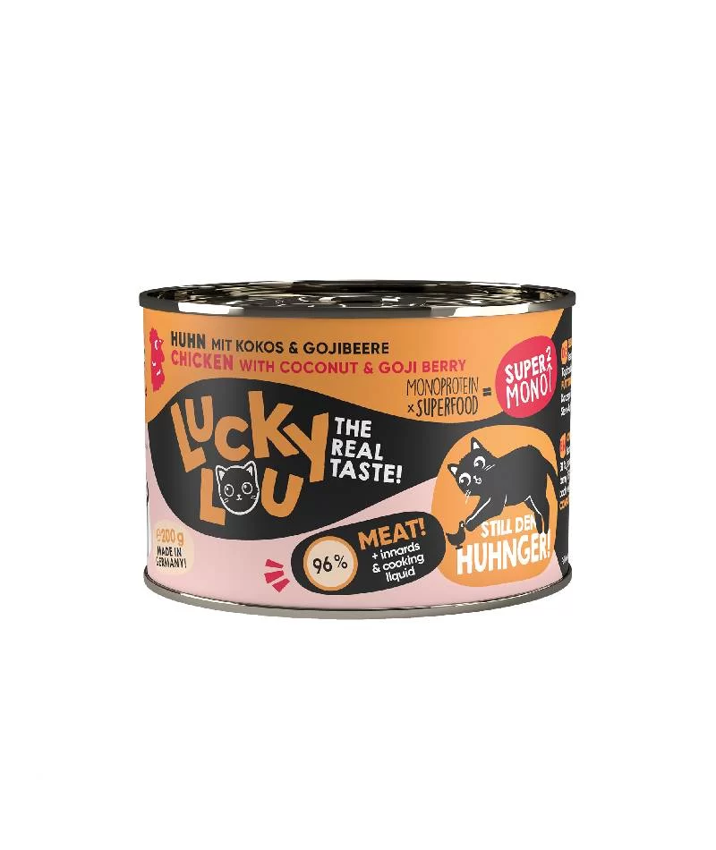 Η Lucky Lou SuperMono Υγρή Τροφή Γάτας, είναι ένας συνδυασμός Μονοπρωτεϊνικής τροφής & Superfoods!