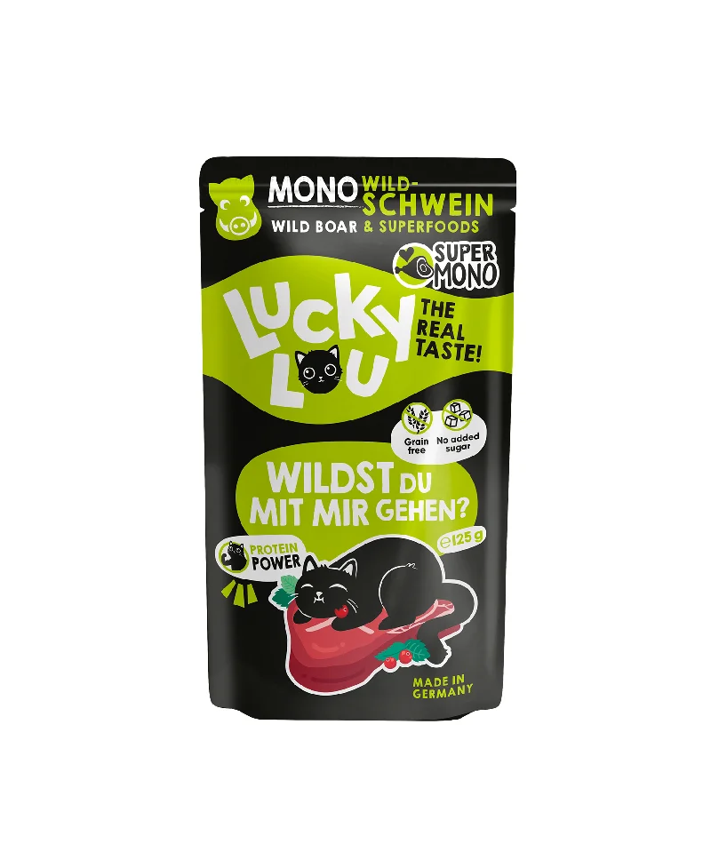 Θέλετε να χρησιμοποιήσετε τη γκάμα των προϊόντων Lucky Lou για να προμηθεύσετε με φαγητό γάτες με ειδικές διατροφικές απαιτήσεις; Με τα Lucky Lou SuperMono συνδυάζονται 2 πράγματα: superfoods και μονοπρωτεΐνικό φαγητό. Μια υπερτροφή για σούπερ γάτες! Αυτό σημαίνει ότι κάθε ποικιλία περιέχει μόνο μία πηγή ζωικής πρωτεΐνης. Υπάρχουν επίσης σούπερ συστατικά όπως τα cranberries, το catnip, το ιπποφαές και το βατόμουρο. Συστατικά που προάγουν τα καλά εντερικά βακτήρια, κάνουν την τροφή για γάτες ακόμα πιο νόστιμη και τους παρέχουν σούπερ θρεπτικές ουσίες και φυτικές ίνες. Ακούγεται υπέροχο, σωστά; Lucky Lou SuperMono. Και επειδή είμαι έξυπνος, δεν θα βρεις στο φαγητό μου δημητριακά, γλουτένη, ζάχαρη κλπ. Είμαι απλά λάτρης της πραγματικής γεύσης!