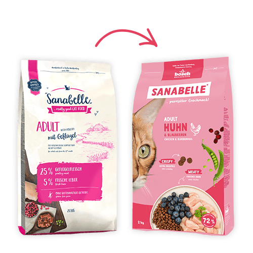 Η ξηρα τροφή Sanabelle Adult gluten-free με φρέσκο κρέας πουλερικών είναι μια πλήρης εύγευστη τροφή για ενήλικες γάτες κατάλληλη και γι’αυτές που ζούν κυρίως εντός του σπιτιού και έχουν μειωμένη σωματική δραστηριότητα. Η χρήση φρέσκου κρέατος πουλερικών παρέχει πρωτεϊνες υψηλής βιολογικής αξίας και εξαιρετική γευση.