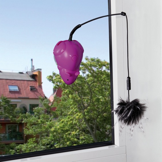 Η μεγάλη βεντούζα σας επιτρέπει να συνδέσετε το ποντίκι Crazy γρήγορα και εύκολα σε οποιαδήποτε λεία επιφάνεια, καθώς και σε πλακάκια ή γυάλινες πόρτες. Για μια πιο μόνιμη λύση, ή για να επισυνάψετε το παιχνίδι σε διαφορετική επιφάνεια, το Crazy Mouse έρχεται επίσης με βίδες.
