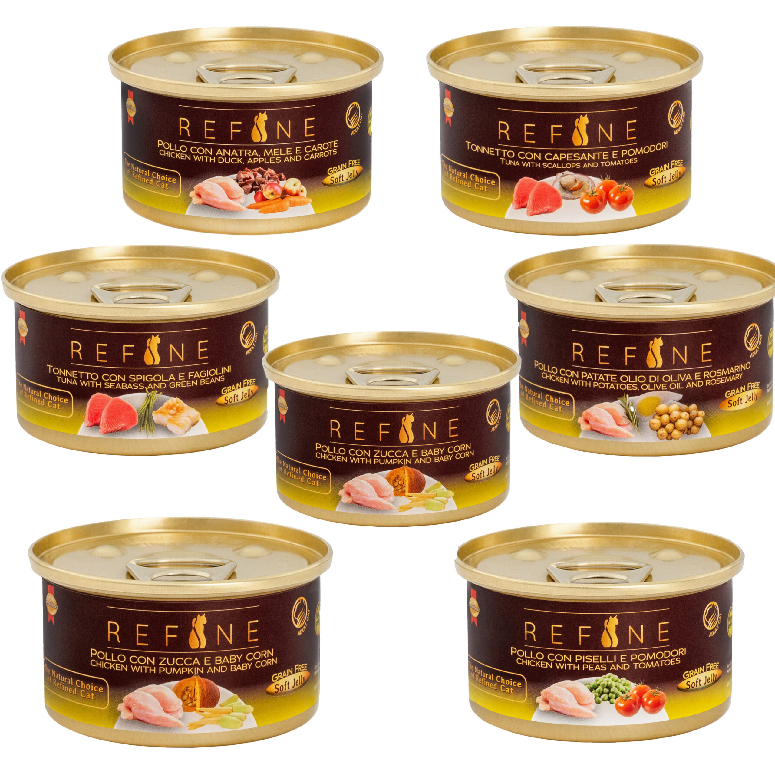 Σύνθεση: τόνος 26%, Κοτόπουλο 22,1%, χτένια 4%, αφυδατωμένες ντομάτες σε σκόνη 0,3%, άμυλο ταπιόκας.
